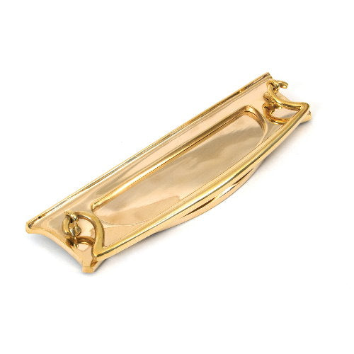 A simple yet stylish Art Deco inspired solid unlacquered polished brass letter plate which also incorporates a traditional door knocker.
