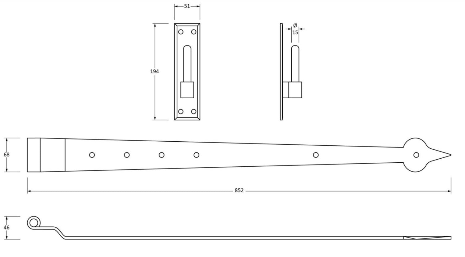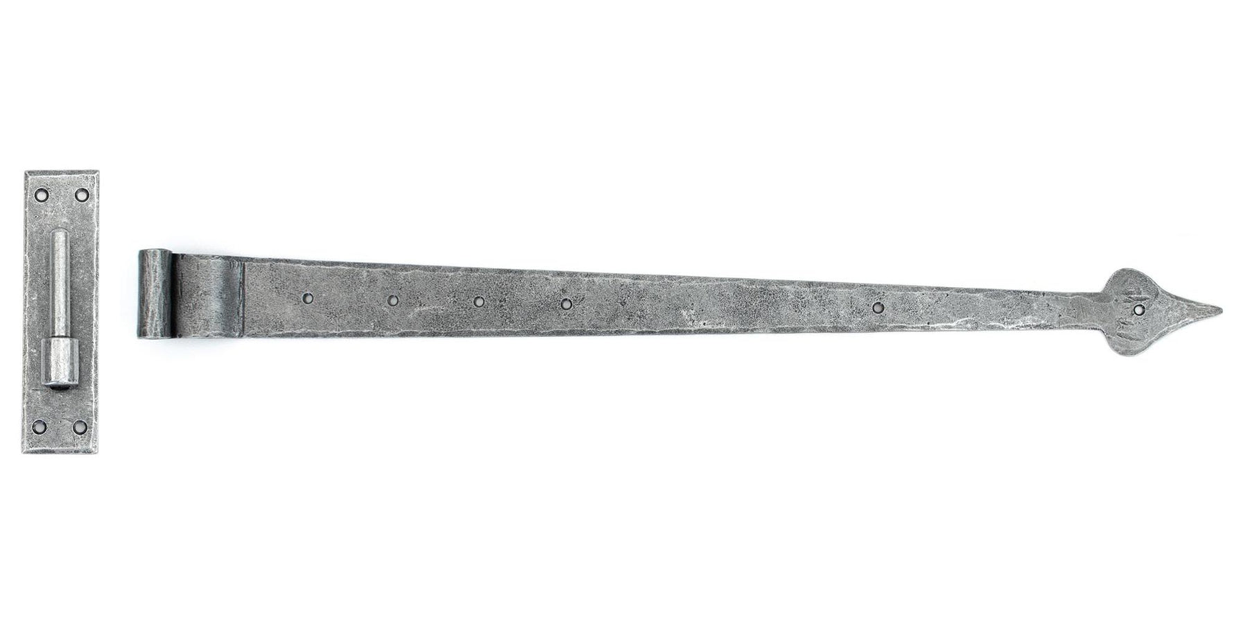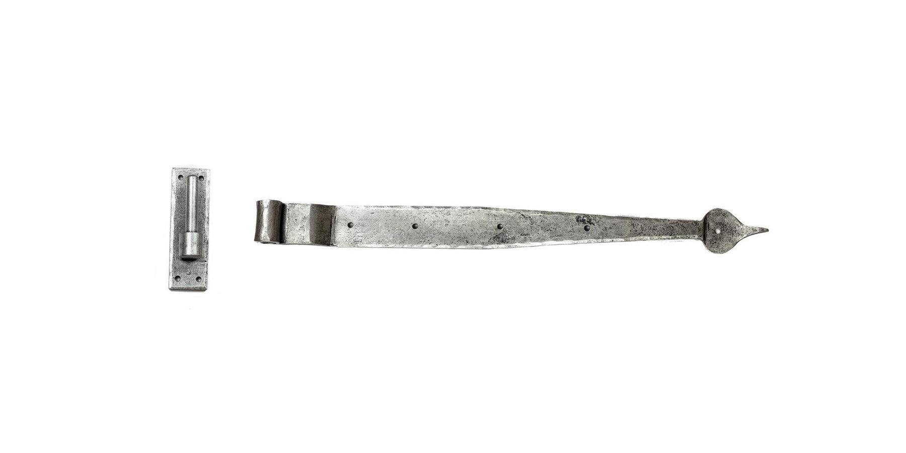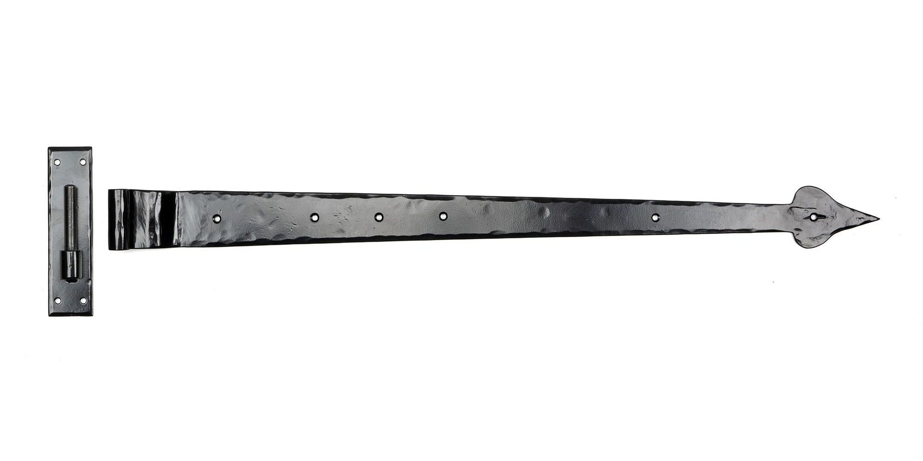 The blacksmith tee hinges are hammered into shape from mild steel using the traditional manufacturing method of an anvil and fire. Band is hinged on the pin attached to the fixing plate. Cranked hinge allows door to be flush with the surface of the frame.