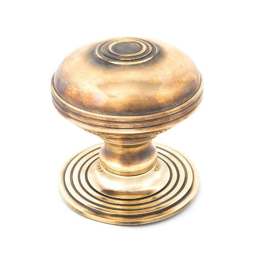 An imposing yet decorative centre door knob designed to match the existing range of Prestbury door furniture. Solid and handcrafted, popular for their weight and simplicity. The unlacquered brass achieves a timeless elegance, highly polished on all surface areas but aged to highlight the detail and design.
