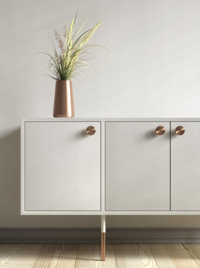 A circular kitchen draw, cabinet or cupboard door knob pull handle supplied with M4 fixings.