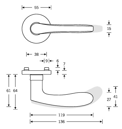 A pair (set of two) FSB 1106 un-sprung lever handles, complete with concealed fixing roses, to suit doors 39mm - 58mm thick.