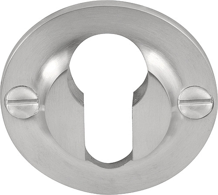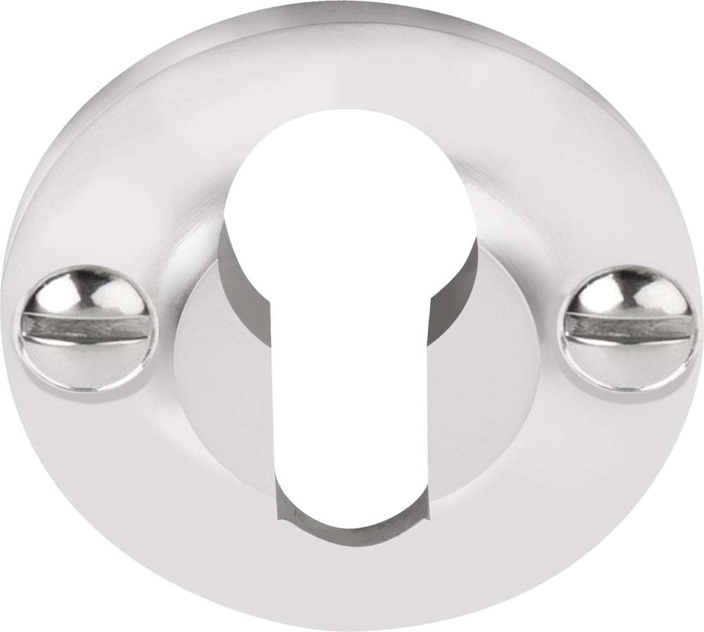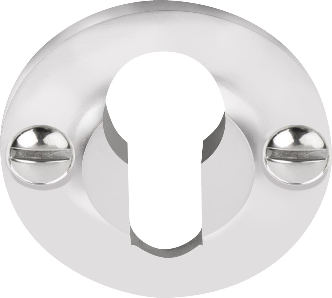 A single solid stainless steel visible fixing euro profile escutcheon to suit Yale type keys.