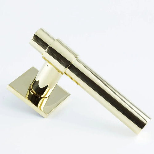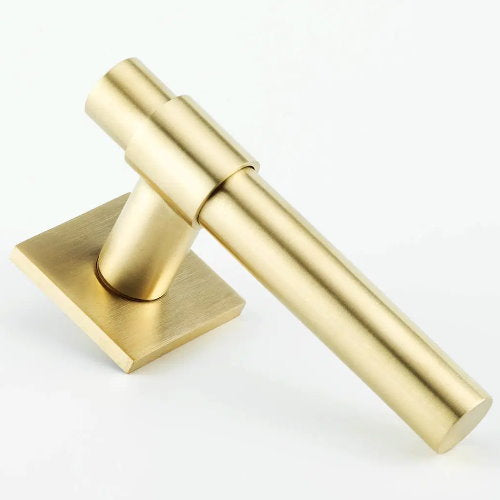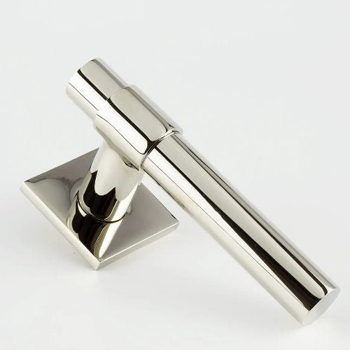 Hard and Ware TL2 solid brass T-Bar Lever on un sprung square rose. With a two part concealed fixing 50mm diameter screw on round rose, with 8mm spindle bar, supplied complete with bolt through fixings and screws.