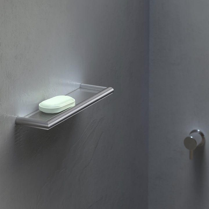 JNF Angulo Series satin grade 304 stainless steel wall-mounted concealed fixing soap shelf.
