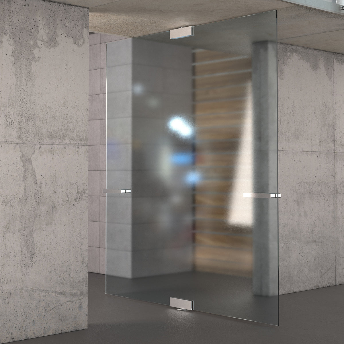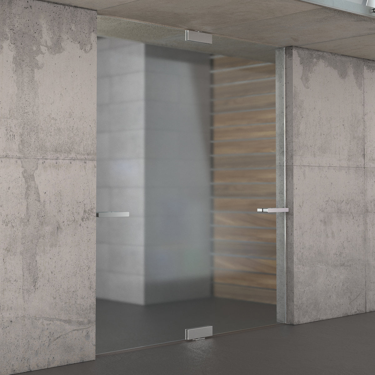 The stainless steel covered bottom plate is suitable for concrete floors with door adjustment +/- 3mm and also 4 degrees which enables the glass door to go tight to the ceiling noting that there will be a 7mm top and 12.5mm bottom gap.