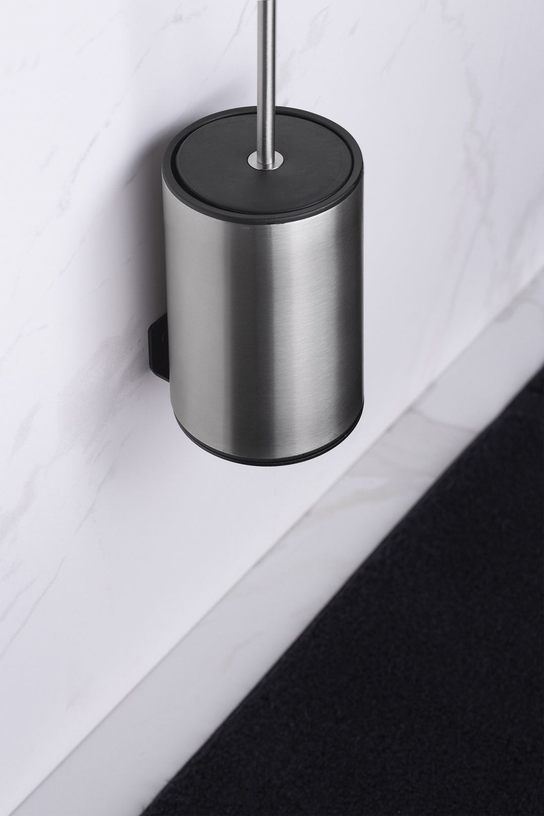 JNF Natur Series grade 304 stainless steel magnetic wall bracket toilet brush holder, with removeable easy clean container and rubber brush cover.