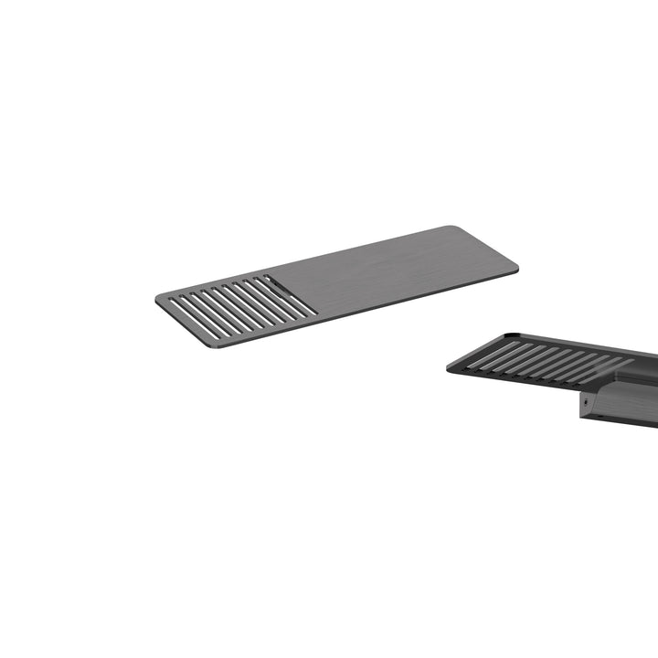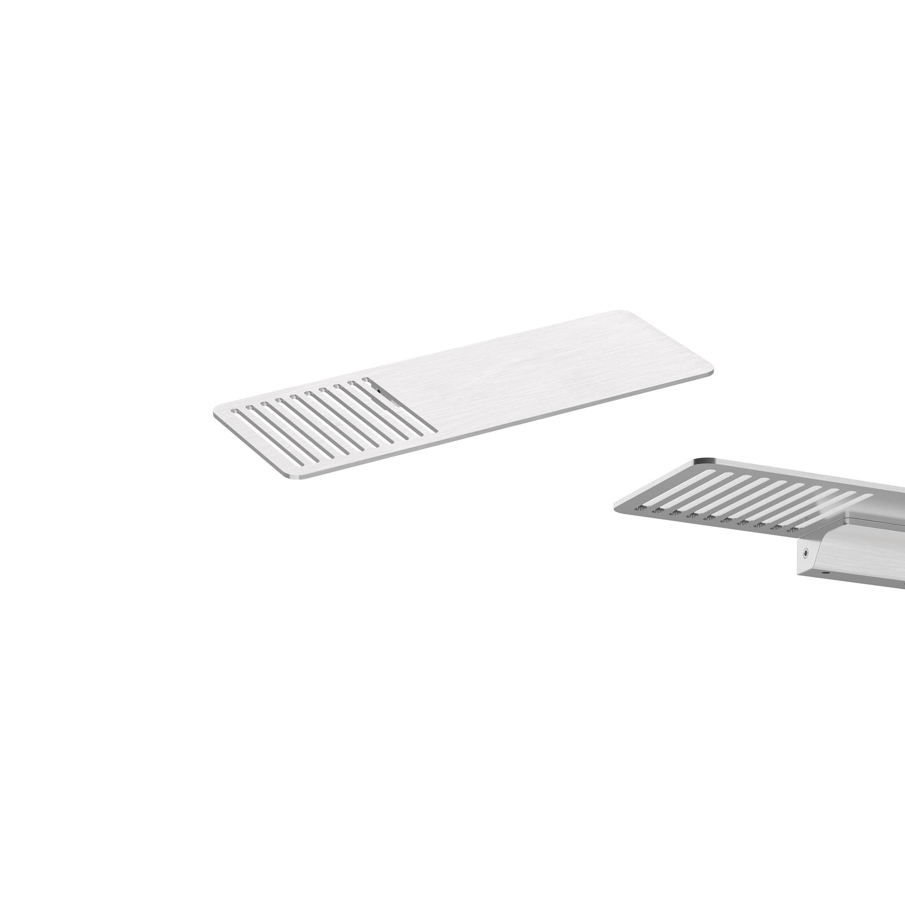 JNF 3mm thick satin grade 304 stainless steel plain and slotted soap holder shelf with wall mounted bracket.