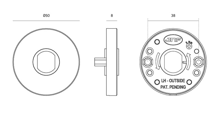 A pair (set of two) JNF Natur Clean solid grade 304 stainless steel plain door knob on round concealed fixing two-way sprung roses, 8mm spindle bar, supplied complete with bolt through fixings and screws.
