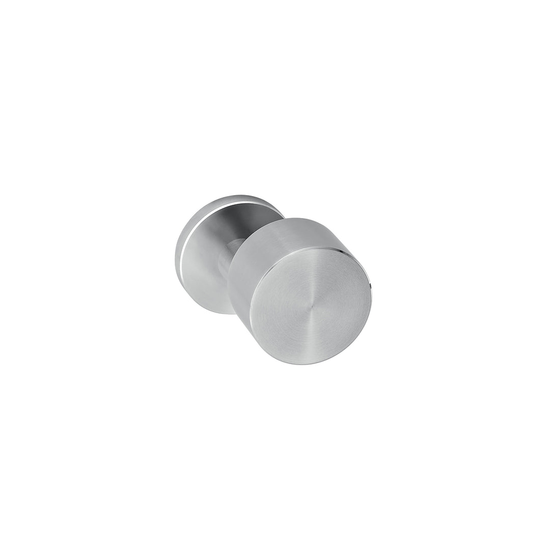 A pair (set of two) JNF Natur Clean Simple Offset solid grade 304 stainless steel plain door knob on round concealed fixing two-way sprung roses, 8mm spindle bar, supplied complete with bolt through fixings and screws.