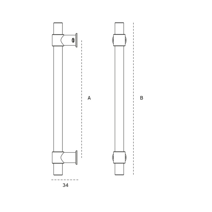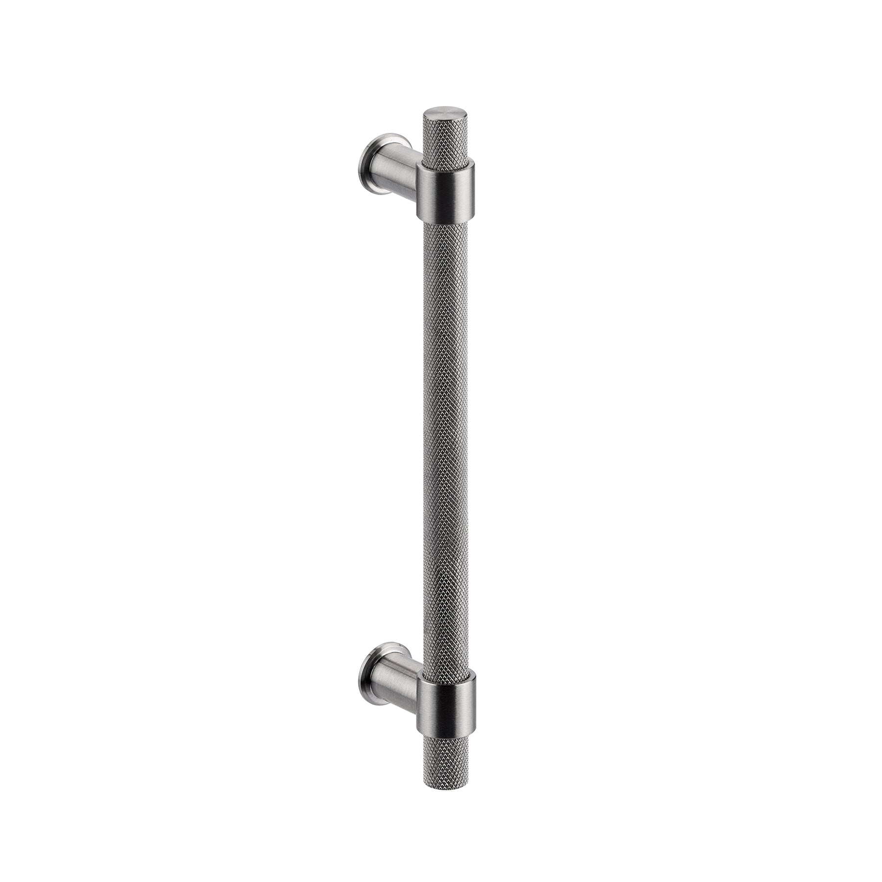 JNF grade 304 stainless steel knurled 16mm diameter cabinet handle, kitchen draw or cupboard door pull handle fitting with M4 through bolts to allow secret fixing from the inside.