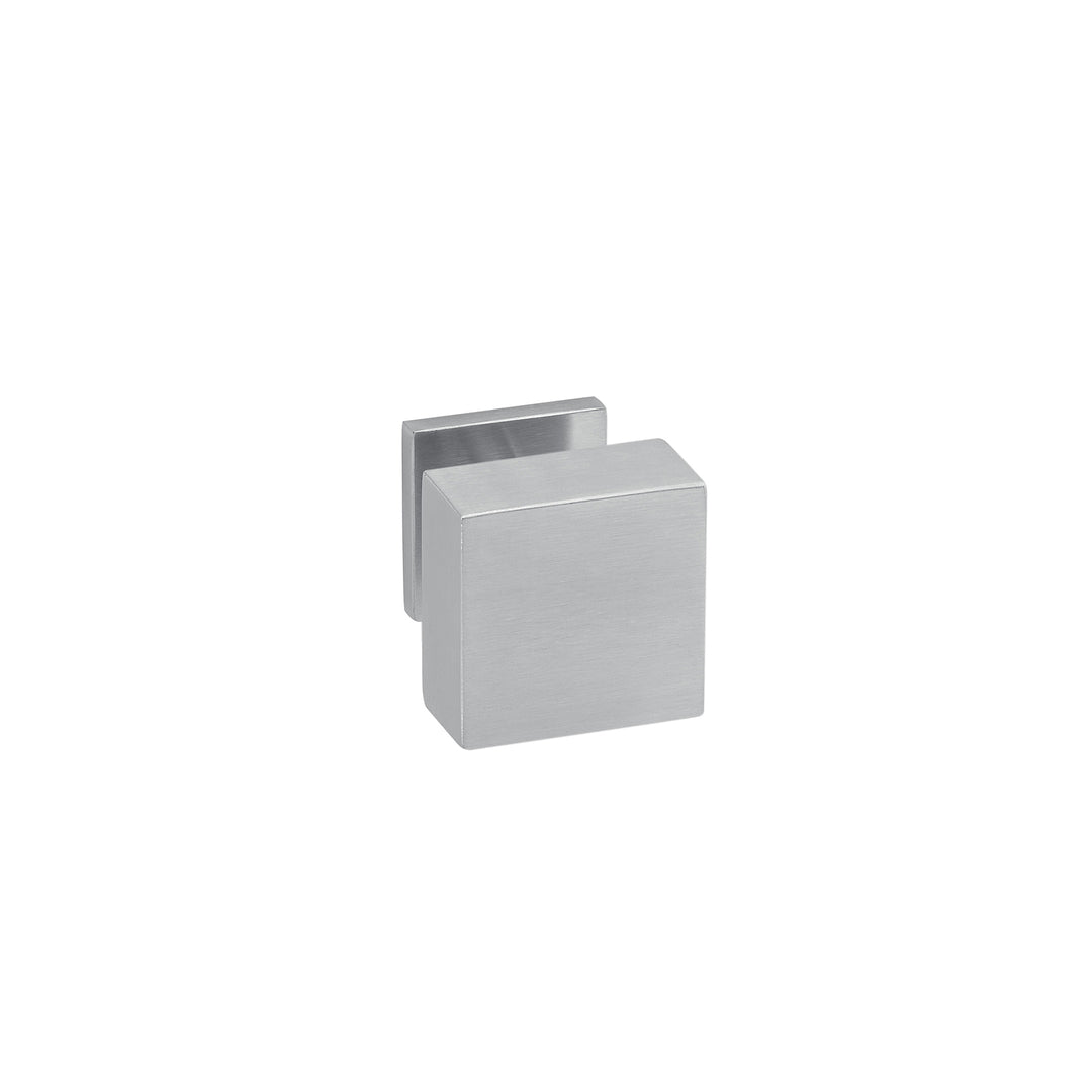 JNF single satin stainless steel 70mm square x 25mm thickness knob handle with 8mm concealed fixing rose backplate.