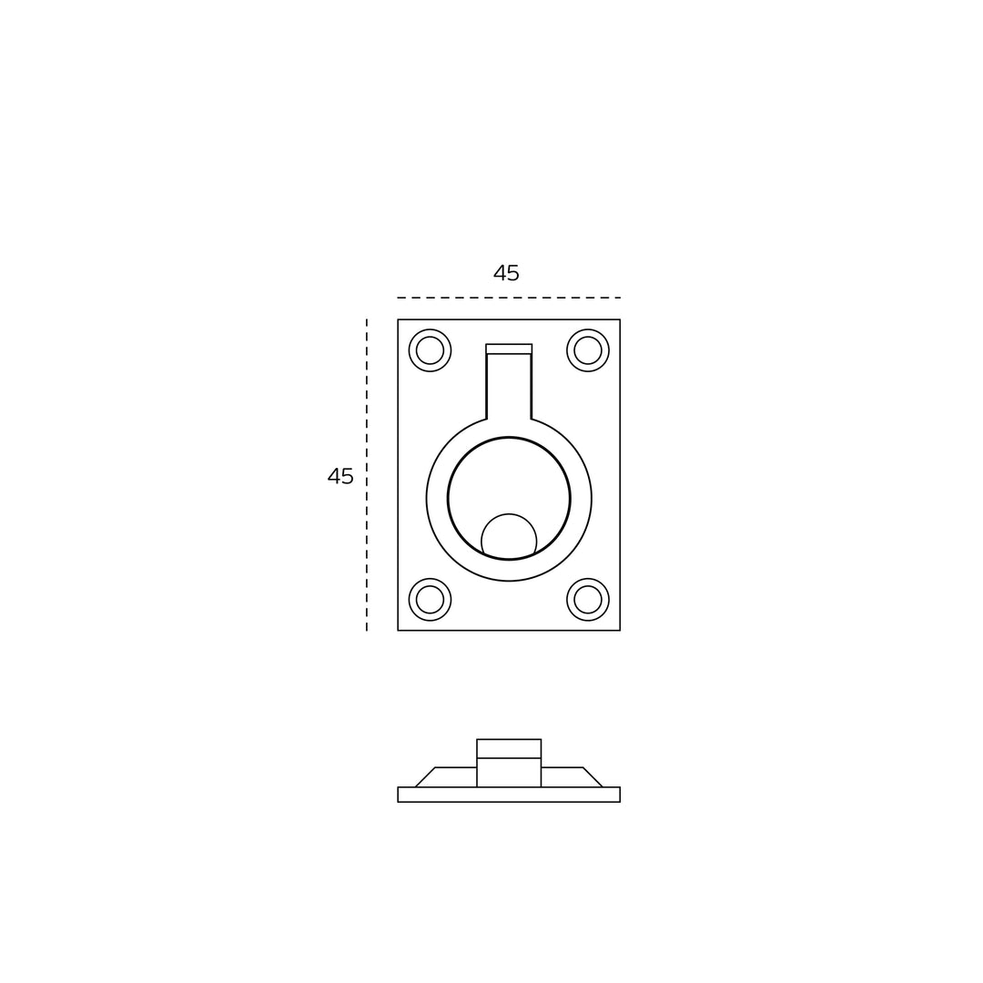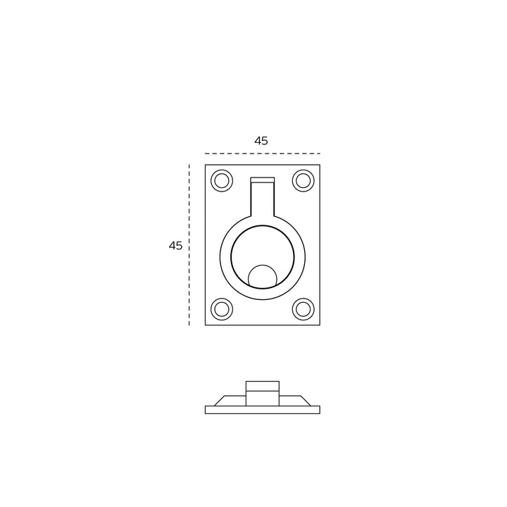 JNF satin grade 304 stainless steel rectangular flush ring with 45mm high x 33mm circular lift up handle, suitable for cabinets or your pocket sliding door.