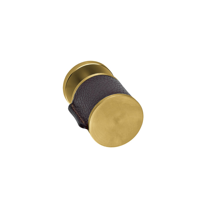A pair (set of two) JNF Skin solid grade 304 stainless steel and natural brown leather door knobs, supplied with concealed fixings roses.
