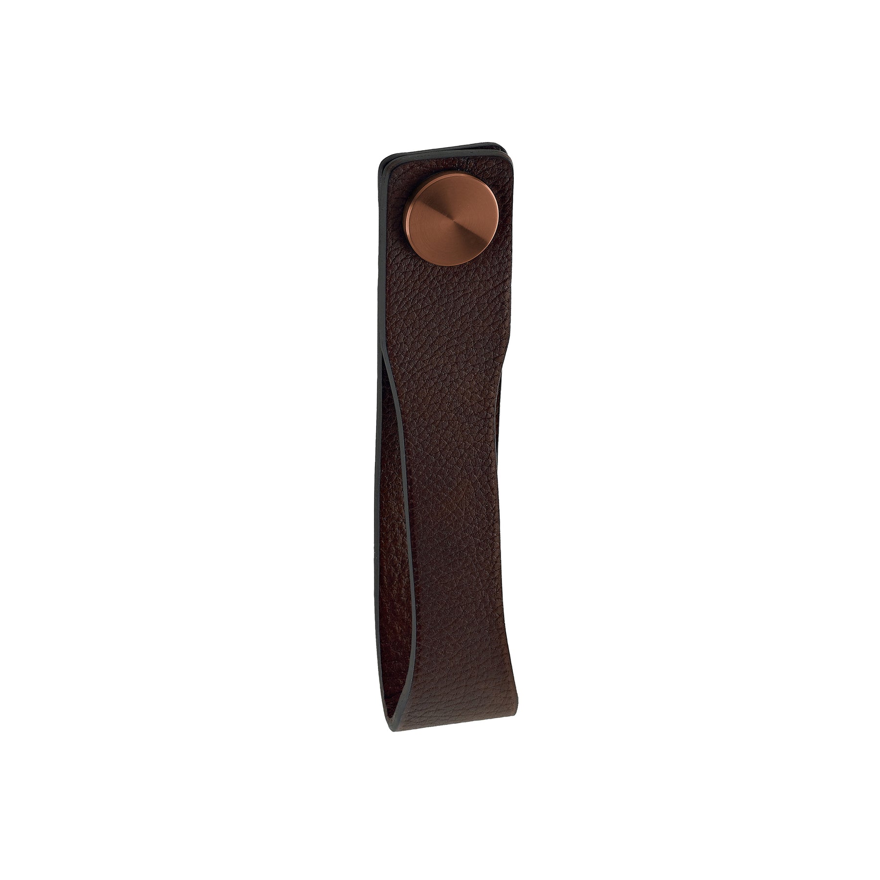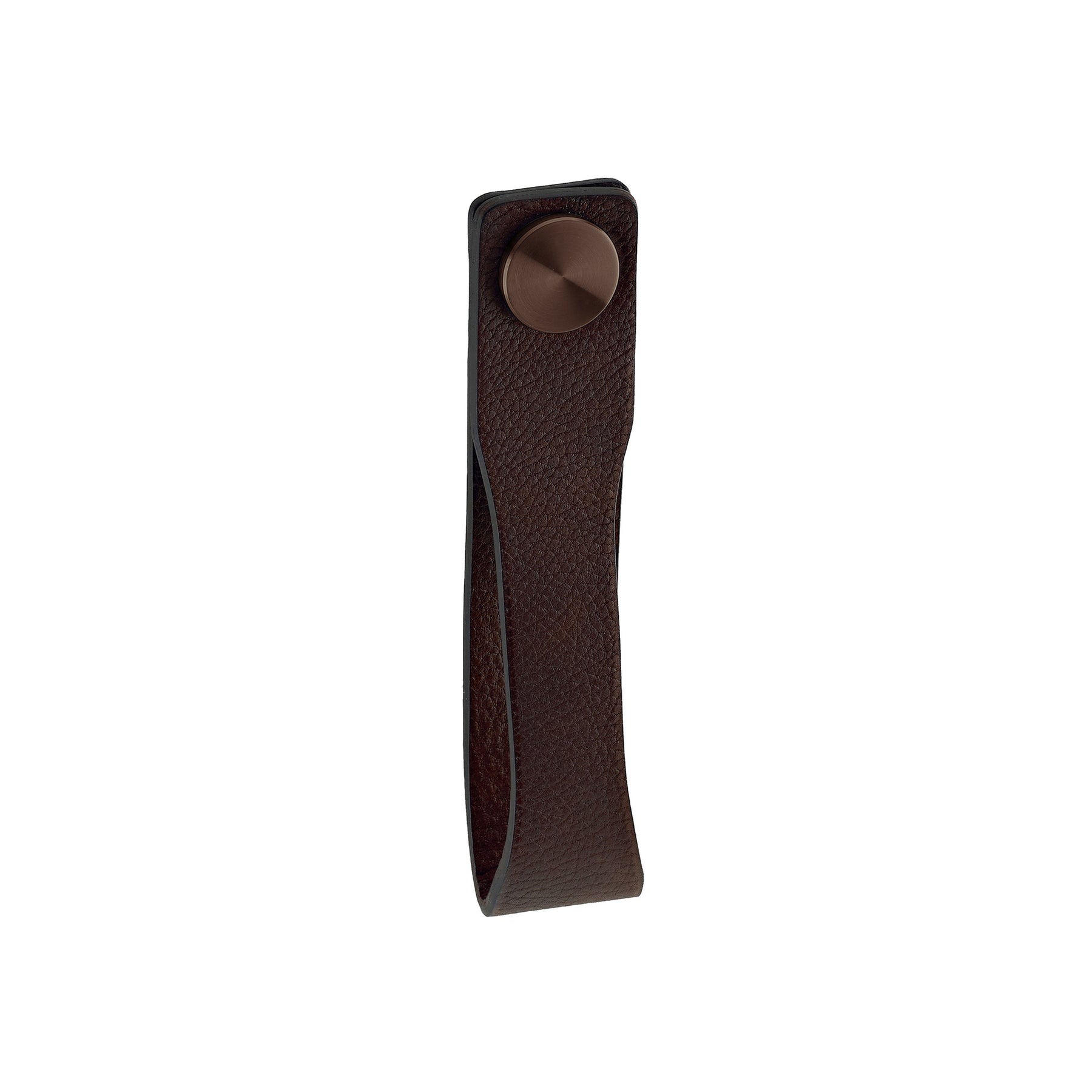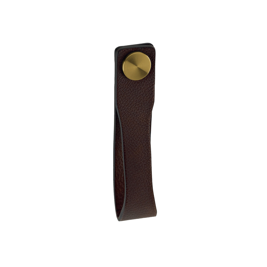 JNF Skin single natural brown leather loop or hoop handle with grade 304 stainless steel circular bolt through fixing plate.