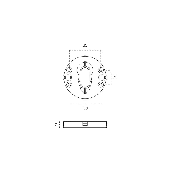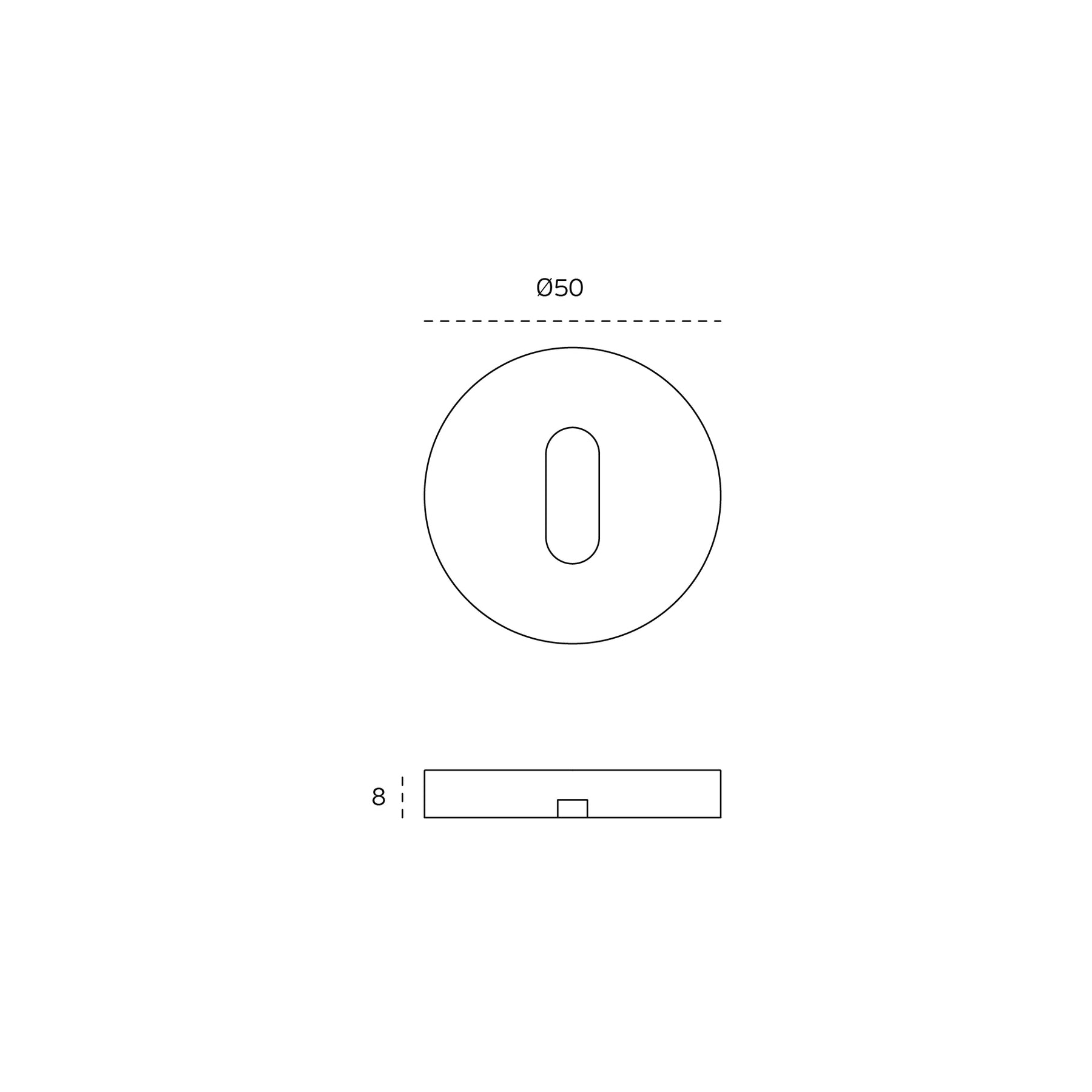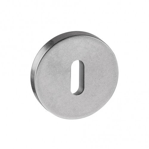 A single 50mm diameter x 8mm thick concealed fixing lever key escutcheon cover to suit Chubb type old fashioned keys.
