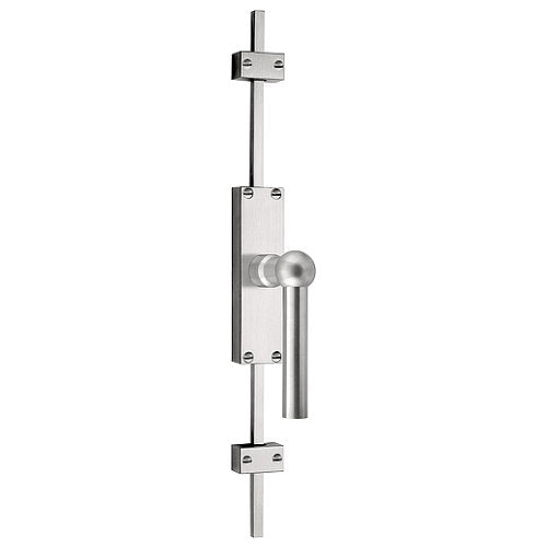 Stainless steel visible fixing espagnolette bolts with top and bottom receiver plate, two rods and four 8mm rod guides to suit doors up to 2.90 metres high.