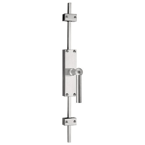 Stainless steel visible fixing espagnolette bolts with top and bottom receiver plate, two rods and four 8mm rod guides to suit doors up to 2.90 metres high.