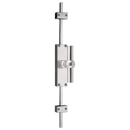 Stainless steel visible fixing espagnolette bolts with top and bottom receiver plate, two rods and four 8mm rod guides to suit doors up to 2.90 metres high.
