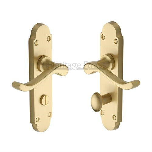 A set of two heritage brass 'Savoy' design lever handles on back plate. Supplied complete with 8mm spindle bar and all relevant fixings.