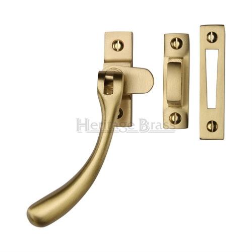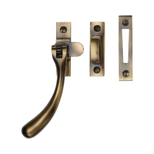 A heritage brass design V1008 visible fixing ball end casement fastener, suitable for weather stripped windows. Supplied with all relevant fixings.