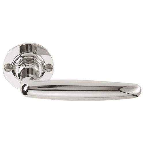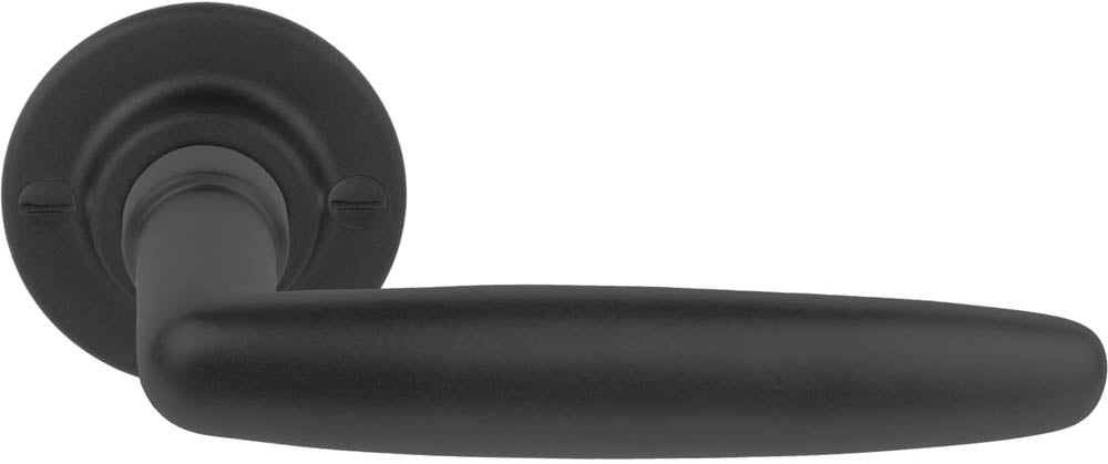 A pair (set of two) 1938 Dudok contemporary design door handles with visible fixing sprung roses, 8mm spindle bar, supplied complete with bolt through fixings and screws to suit doors 44mm thickness.